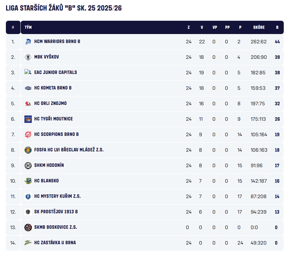 Starší žáci 2025 - 2026, Liga starších žáků B sk. 25